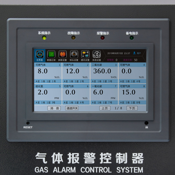 氣體報警控制器連接氣體探測器可持續監測環境中的有毒有害氣體,根據接收到的輸入信號顯示被測氣體的濃度,并可通過Rs485數字信號與上位機通訊。控制器可設定二級報警值,當監測到被測氣體濃度超標時根據不同的報警級別發出聲光信號示警。數據記錄、報警記錄、系統日志以及報警通道均可通過菜單查詢,并可通過繼電器輸出來控制外部設備,如排風系統或其它外部設備。